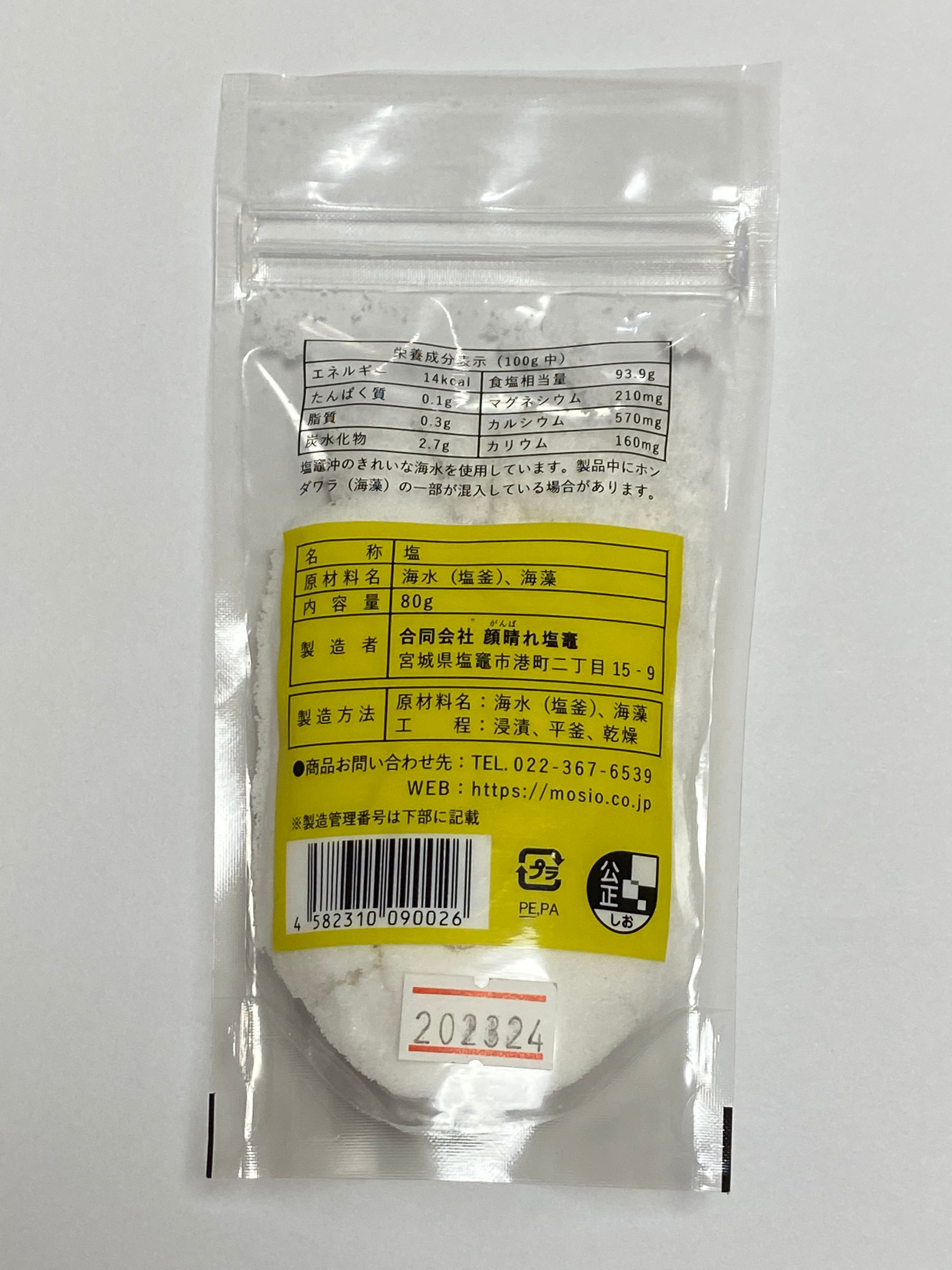 神話の塩法を今に!【送料無料】塩竃の藻塩(塩竈市)業務用 1㎏※写真は80g用です 顔晴れ(がんばれ)塩竈